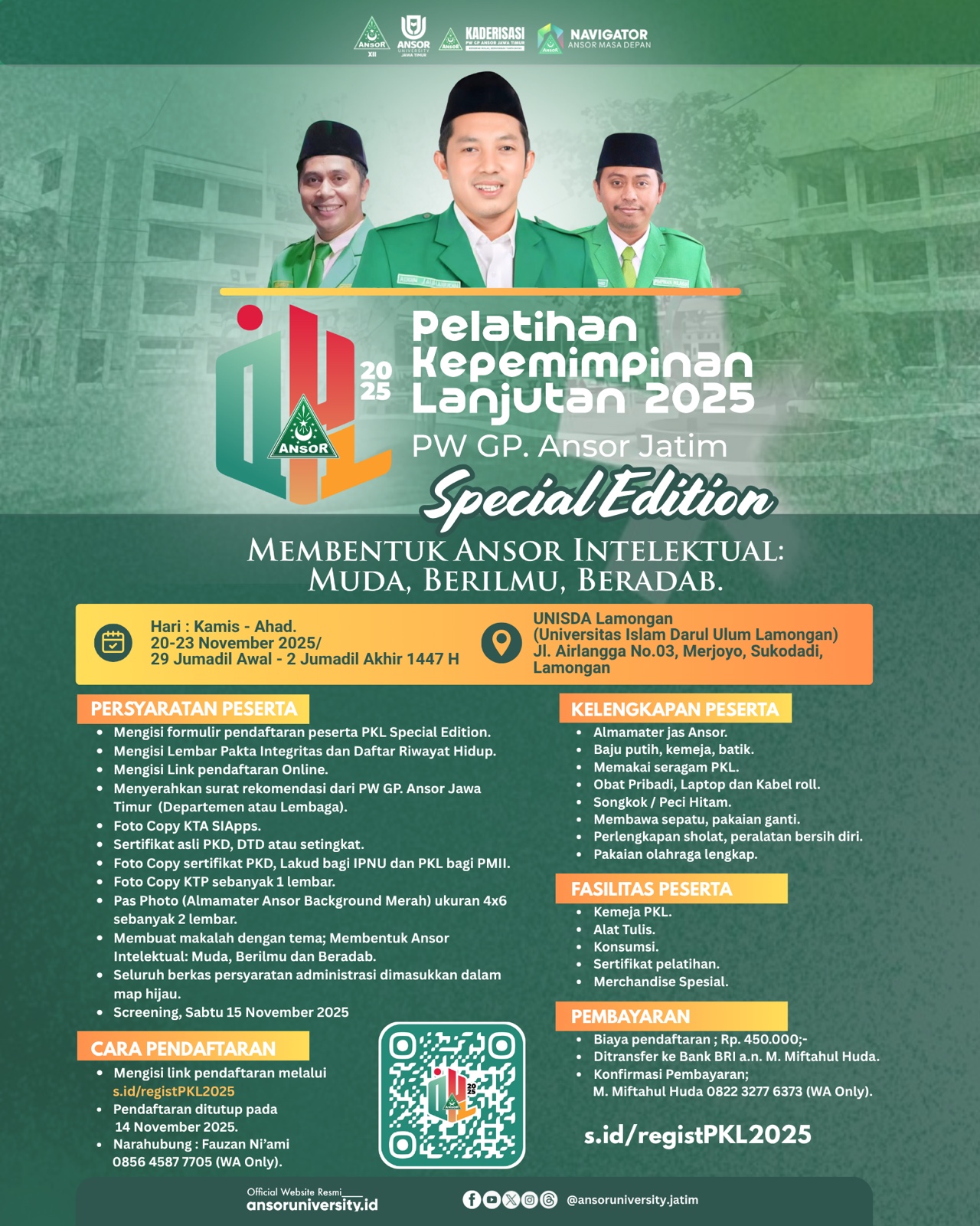 ANSOR University sebagai inisiatif unggul PP GP Ansor untuk mencetak kader berdaya saing, dengan keterampilan nyata yang mendorong potensi tumbuh dan memberi dampak luas bagi lingkungan sekitarnya.